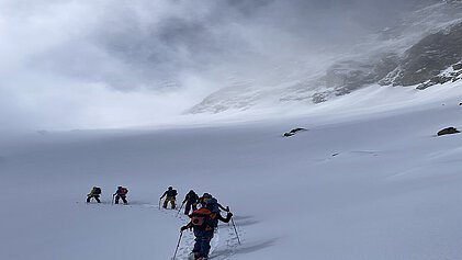 Ausrüstung: Ski- bzw. Snowboard-Tourenausrüstung, „Piepser“, Sonde und Lawinenschaufel, Sitzgurt, 3-Wege Verschlusskarabiner